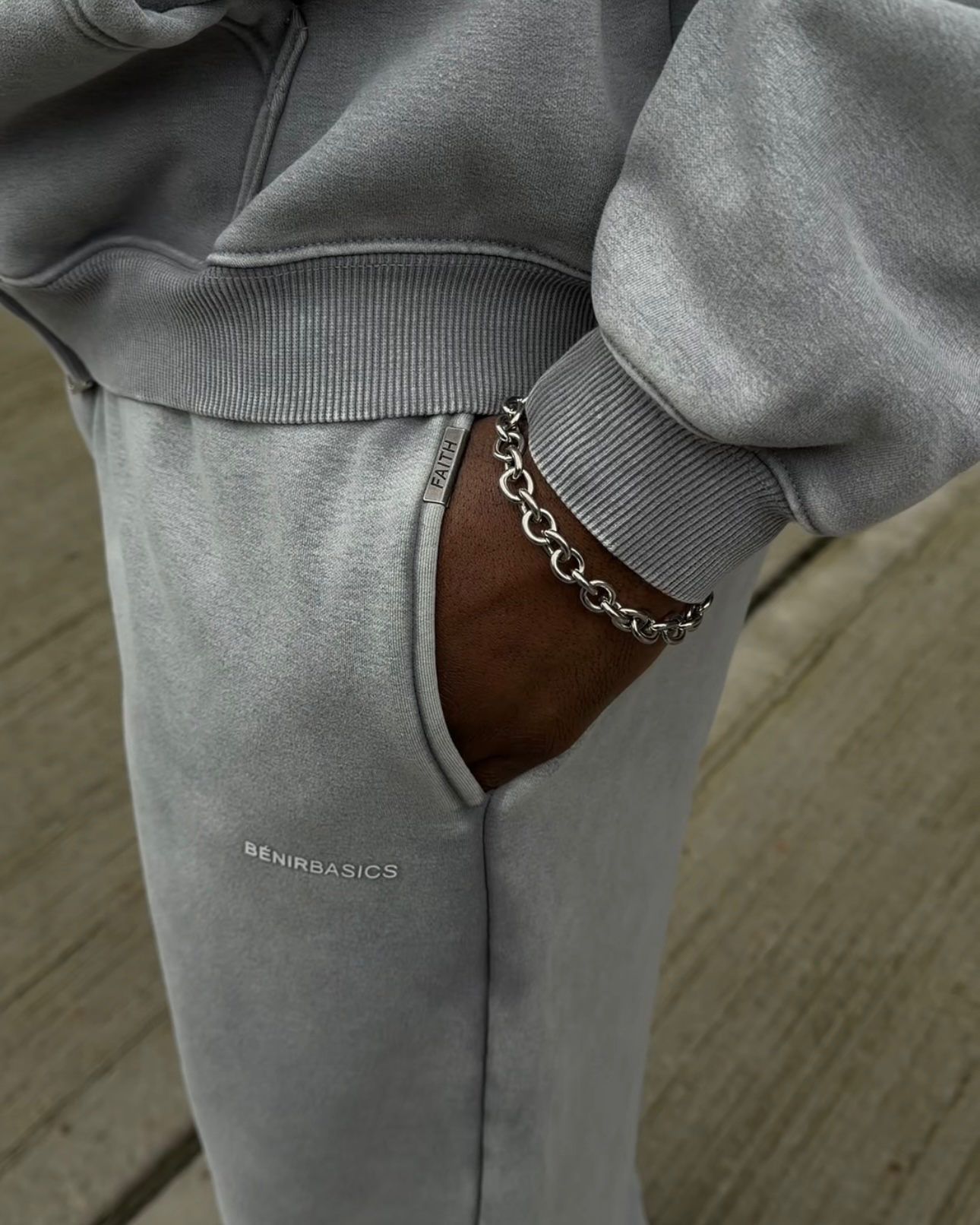Made from heavyweight 450 GSM Fabric, it holds its shape and keeps that structured, premium feel. The fit is slightly oversized, relaxed but not drowning and sit neatly on the shoe without bunching or trailing.